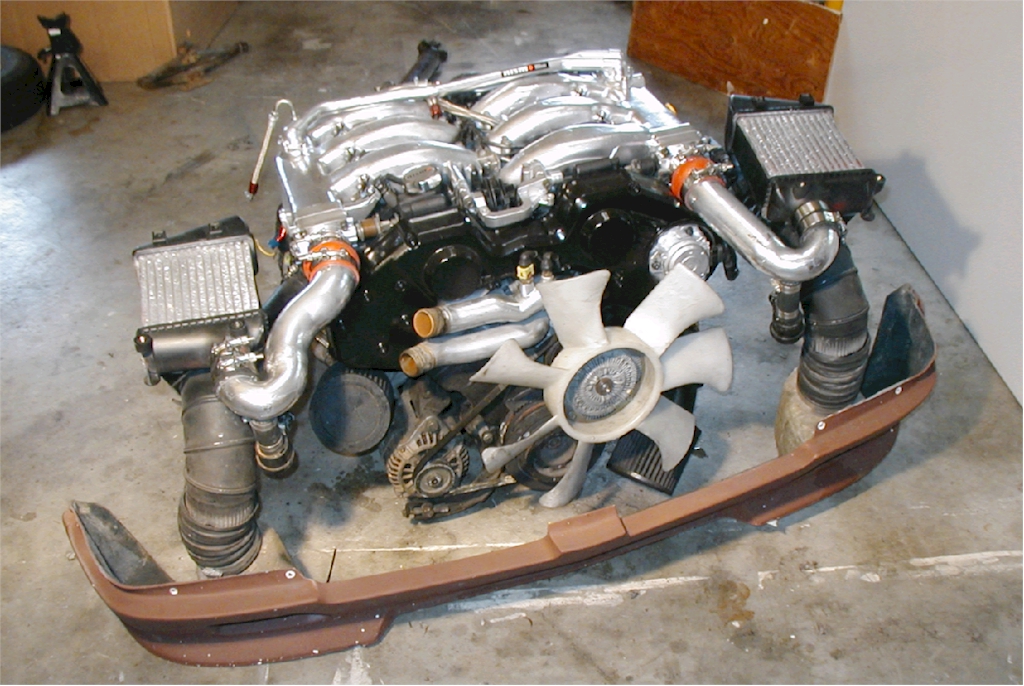 transmission, 280Z limited slip diff (R180) 3.36:1 ratio. SUSPENSION : Rear - Nissan Competition (Roadster front) springs. 862#/in (225#/in wheel rate). Tokico Illumina 5-way adjustable shocks. DAMB productions "Penultimate" adjustable rear crossmember. Brakes : Front - 11.0in vented with aluminum 4-piston calipers. Rear: 11.7in vented rotors with 2 piston aluminum calipers. 15/16in 280ZX master cylinder Tires/wheels: 215/40-ZR16 (front) 225/40R-16 (rear) on 16x7.5" wheels from 1993 300ZX Weight: 2490lbs (empty tank), with 57/43 weight distribution Other: 15 gallon fuel tank, 255LPH 300ZX TT fuel pump, Autopower 4pt roll bar, 4pt harness for both driver and passenger, Toyota MR2 seats, 13" Grant steering wheel, 130w H-1 high beams set up w/ relay to use w/ std. high-beam switch. The V-6 swap also required the battery to be moved to the trunk. Performance Horsepower : 336hp @